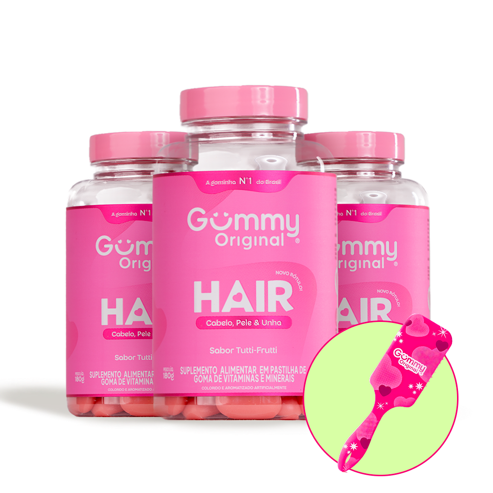 Gummy Hair é a primeira vitamina em forma de coração do mundo e te oferece uma forma prática e saborosa de ingerir uma combinação de vitaminas e minerais que ajudam a manter a saúde da pele, dos cabelos e das unhas. A exclusiva combinação de biotina, retinol e outros 10 nutrientes proporciona um cuidado especial para o corpo e para a sua autoestima!